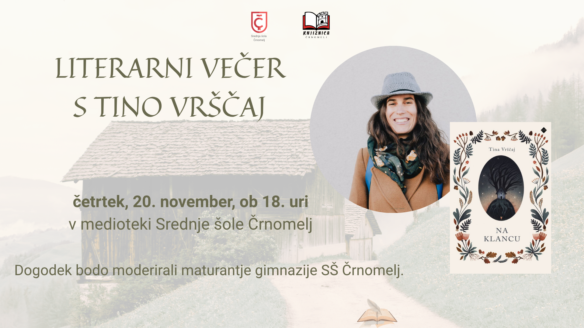 Literarni večer s Tino Vrščaj 13.11.2025/in Obvestila /by Jelena ŠikonjaSrednja šola Črnomelj in Knjižnica Črnomelj VABITA na https://sscrnomelj.si/wp-content/uploads/2025/11/Vabilo-FB-e1763034100798.png 720 1920 Jelena Šikonja https://sscrnomelj.si/wp-content/uploads/2021/01/ss_crnomelj_logo.png Jelena Šikonja2025-11-13 12:45:222025-11-13 12:45:22Literarni večer s Tino Vrščaj